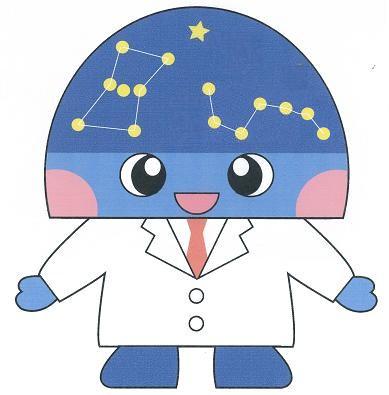 施設の象徴的な設備でもあるサイエンスドームがモチーフです。頭には小学生が学ぶ代表的な星座、オリオン座と北斗七星を描いています。子どもたちに楽しく科学を学んでもらいたいという思いから、「親しみやすい先生」をテーマにしています。