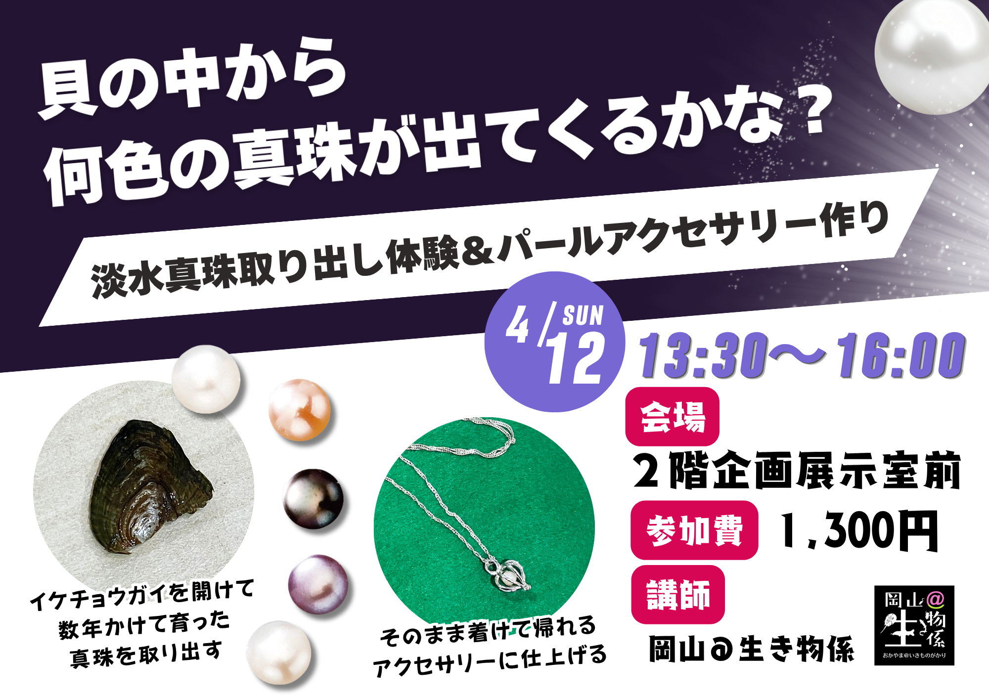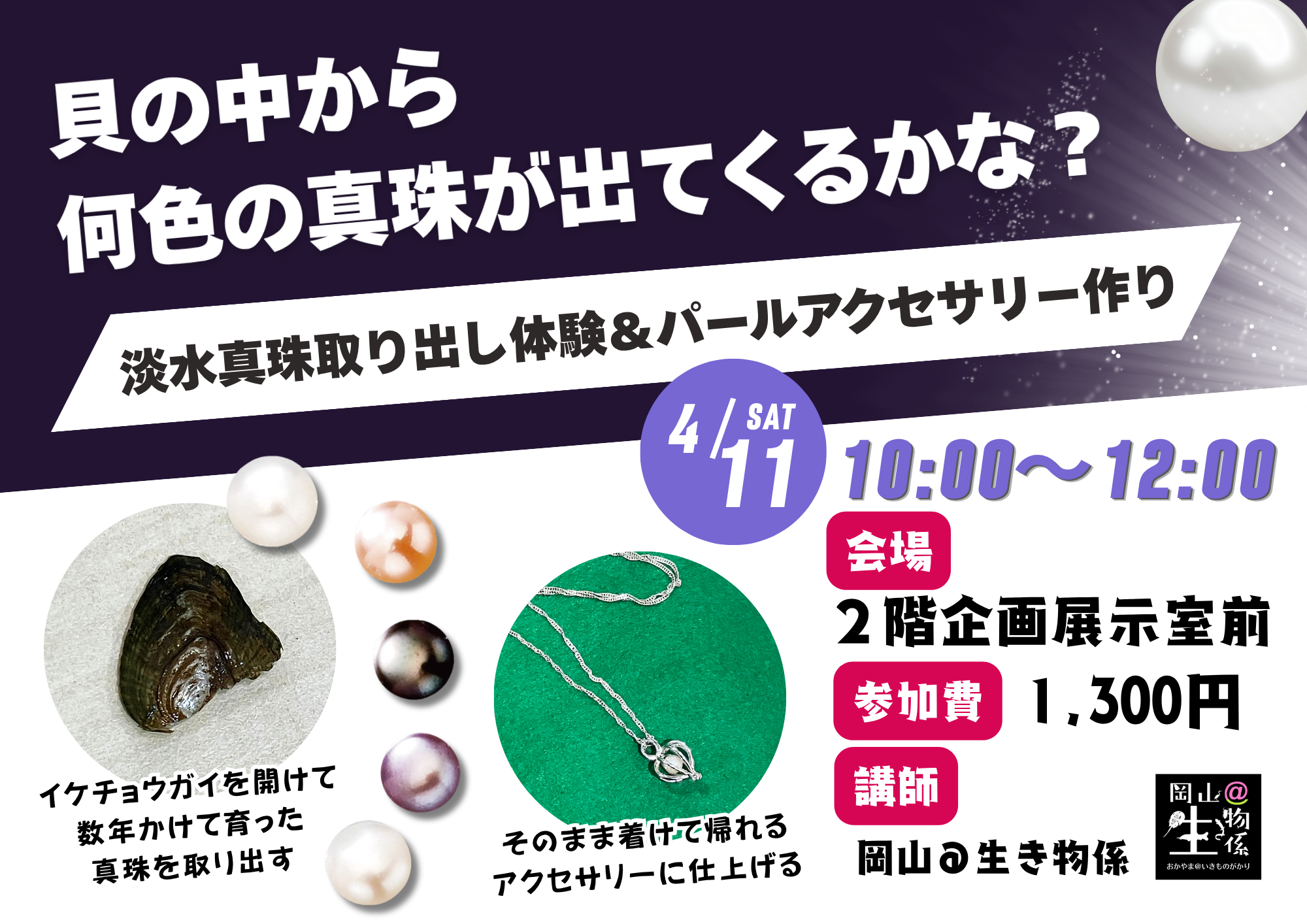 淡水真珠取り出し体験&パールアクセサリー作り(4/11・4/12)