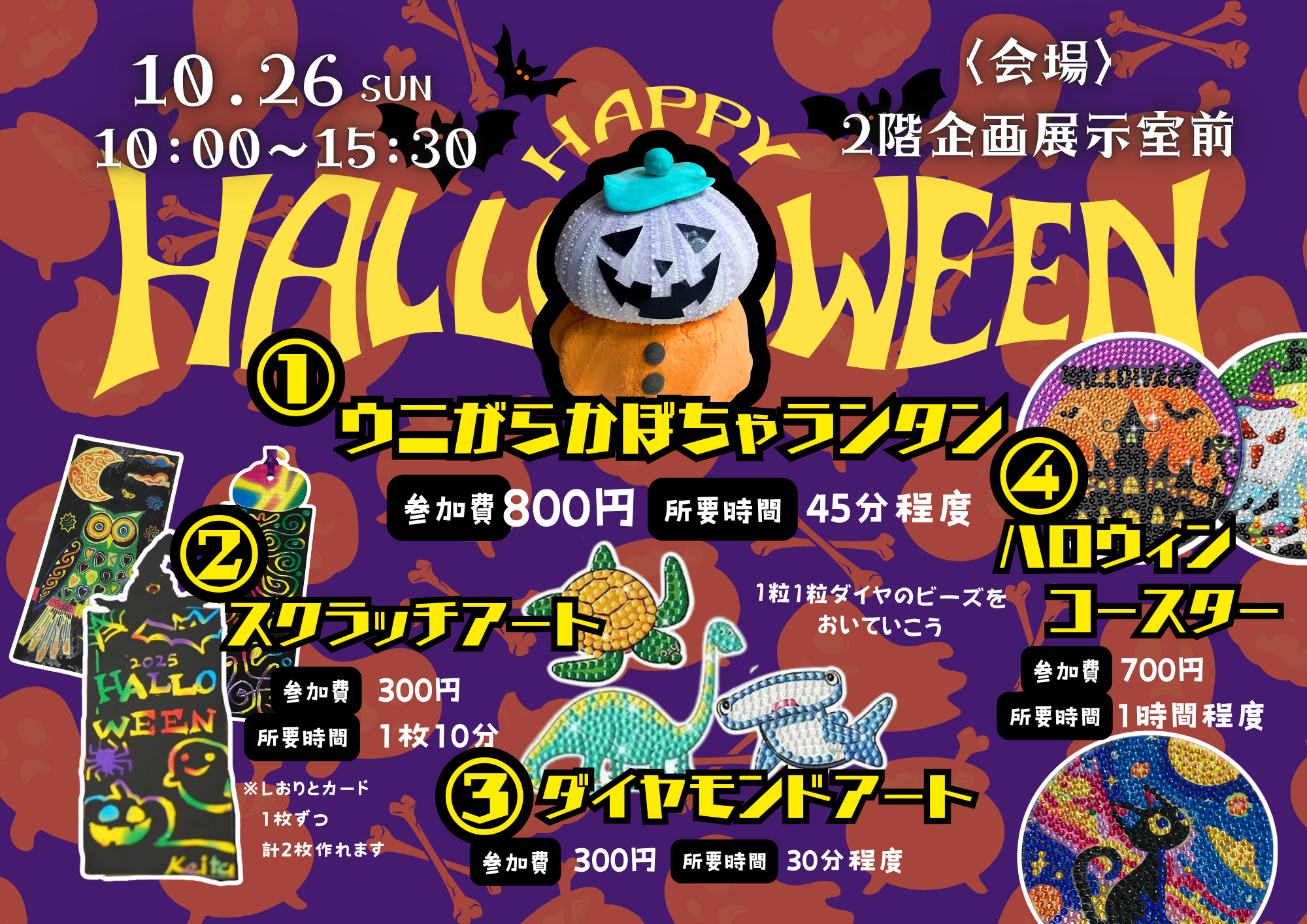 ・ハロウィンコースター700円 ・ウニがらかぼちゃランタン800円 ・ハロウィンスクラッチアート300円 ・ダイヤモンドアート300円 |