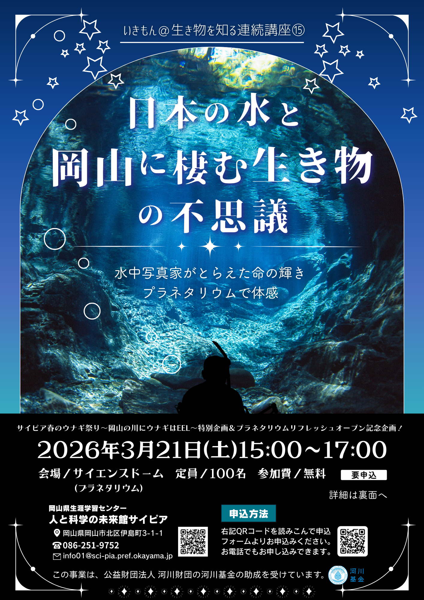 要申込いきもん@生き物を知る連続講座⑮「日本の水と岡山に棲む生き物の不思議」
