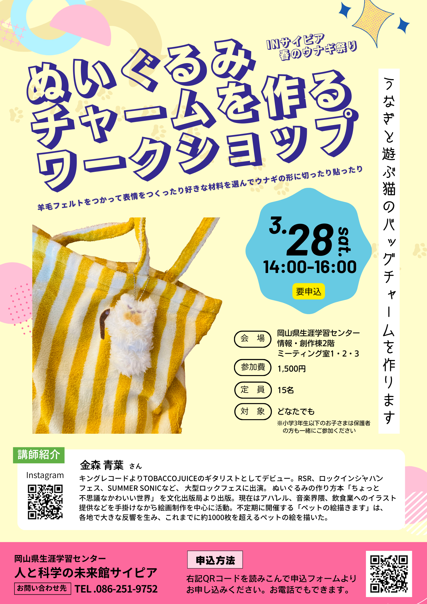 要申込ぬいぐるみ チャームを作る ワークショップ(3/28)